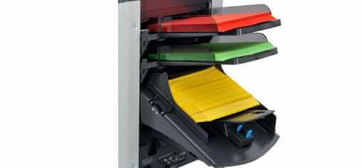 Continuously feed 325 sheets from each feeder, or up to 650 documents using two feeders in cascading mode. Automatically folds & inserts up to 2,000 mail pieces per hour. Further enhance productivity with the optional performance package and process up to 2,500 mail pieces per hour, increase folding capacity to up to 8 sheets single fold.